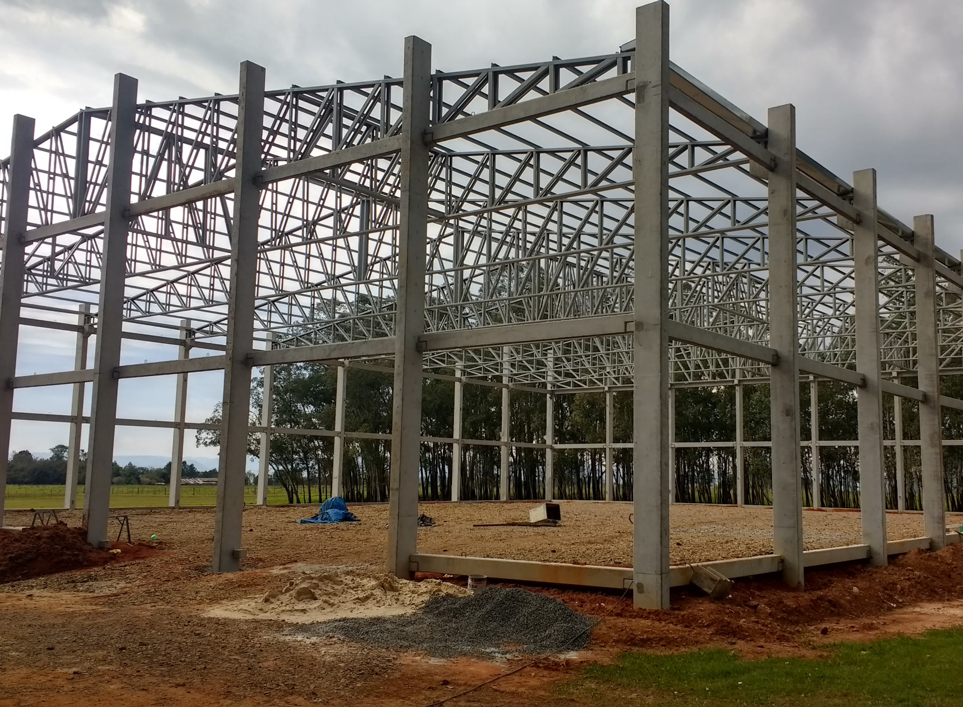 Também trabalhamos com Galpão de estruturas metálicas,aviários , compost barn para vacas,mezzaninos , pórticos , coberturas ,varandas , garagens , pilares ,vigas treliçadas e tesouras metálicas.